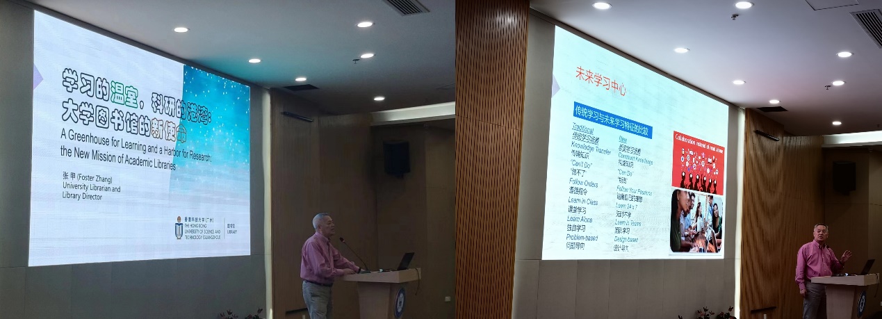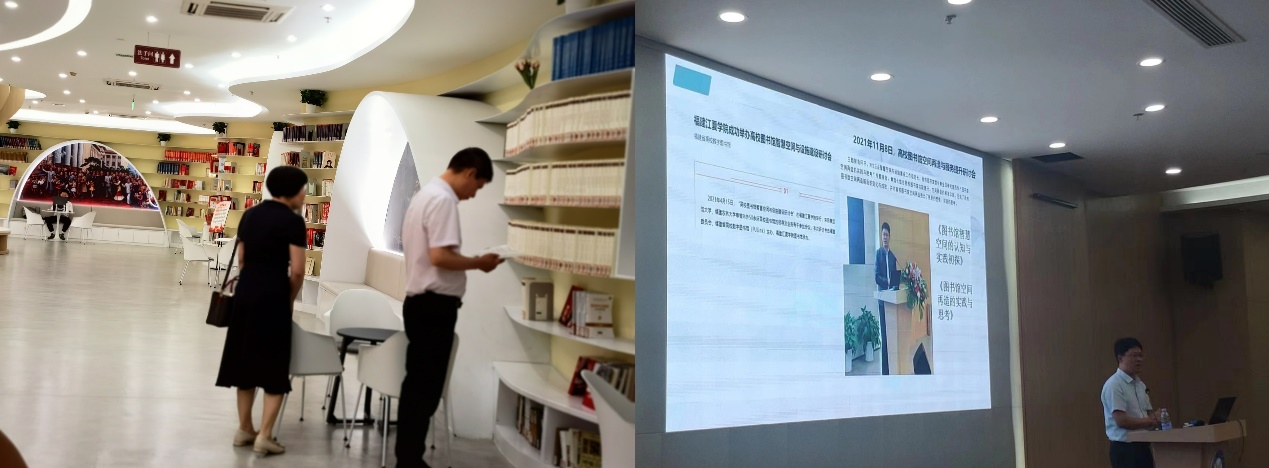 图书馆受邀参加由福建省高校数字图书馆举办的关于"高校图书馆空间改造的实践与思考"研讨会。会上,香港科技大学(广州)图书馆馆长张甲先生作《学习的温室,科研的港湾:大学图书馆的新使命》的主题演讲,福建江夏学院图书馆馆长黄金凤、莆田学院图书馆馆长陈春阳、福建警察学院图书馆流通阅览部主任黄秋梨进行了交流互动。会议从功能、空间、形象、设备等多个维度,对高校图书馆进行深入探究与思考,助力福建各大高校图书馆进行"一站式"的现代化提升。