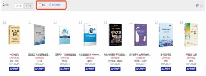 1.3、平台可【全选】当前页面的所有图书加入购物车。