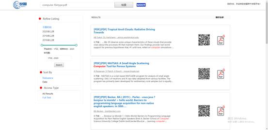 (1)切换利用各大搜索引擎,输入所要查询的关键词等信息,通过浏览搜索引擎返回的结果确定所需文献是否可以下载,有些文献可直接下载浏览;