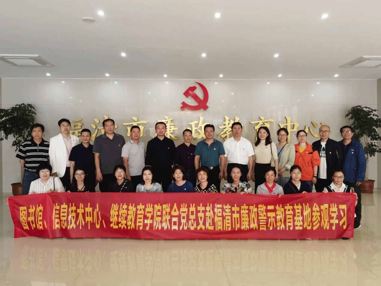为深入学习贯彻习近平新时代中国特色社会主义思想和党的二十大精神,扎实开展党纪学习教育,进一步发挥典型案例警示教育作用,增强党员领导干部廉洁自律意识,筑牢拒腐防变思想道德防线,6月6日下午,图书馆、信息技术中心、继续教育学院联合党总支组织党员赴福清市廉政教育中心开展现场学习教育实践活动暨主题党日活动,党总支书记高诚杰带领党员们参加此次活动。